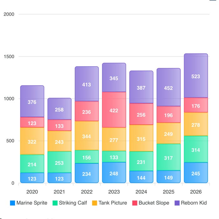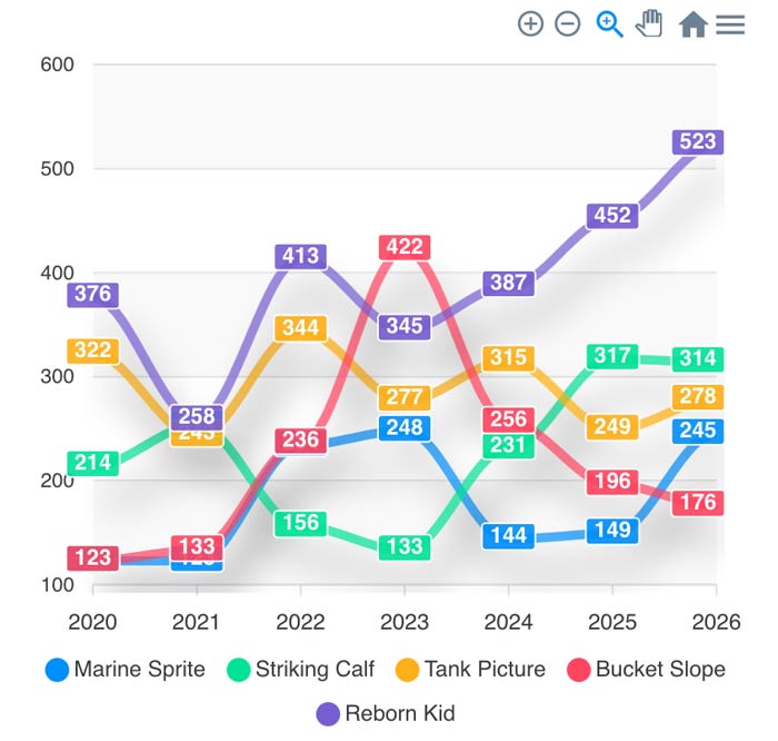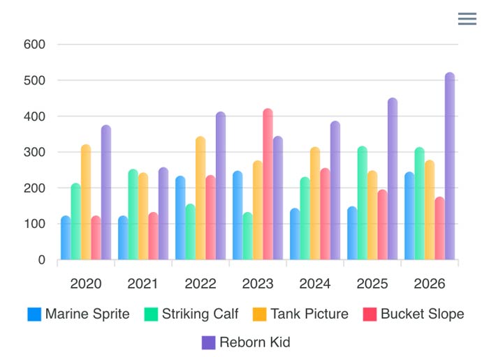 Up till 5 data for each item. Data 2, Data 3, Data 4 and Data 5 are available only for styles Line, Bar and Radar