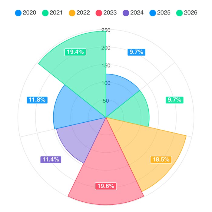 - Style - Lines / Bar / Pie / Radar / Radial Bar