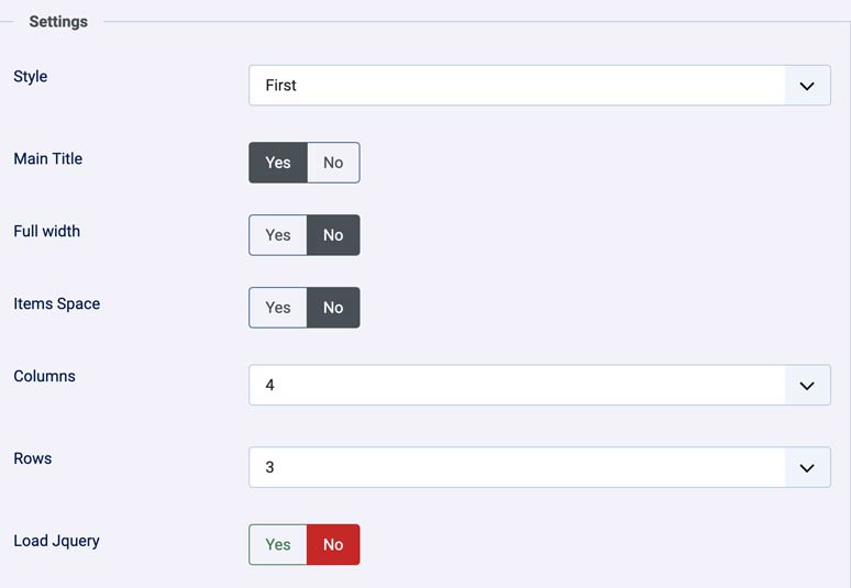 - Columns - Number Of Columns to show